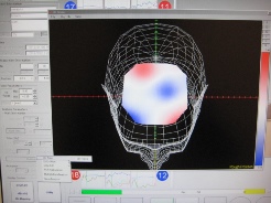 光トポグラフィは、頭皮上から光ファイバーを通じて照射される近赤外線レーザーを使って、脳に栄養を送る血液の変化を測定し、脳の活動がどのように起こっているのかを客観的に判断するための装置です。